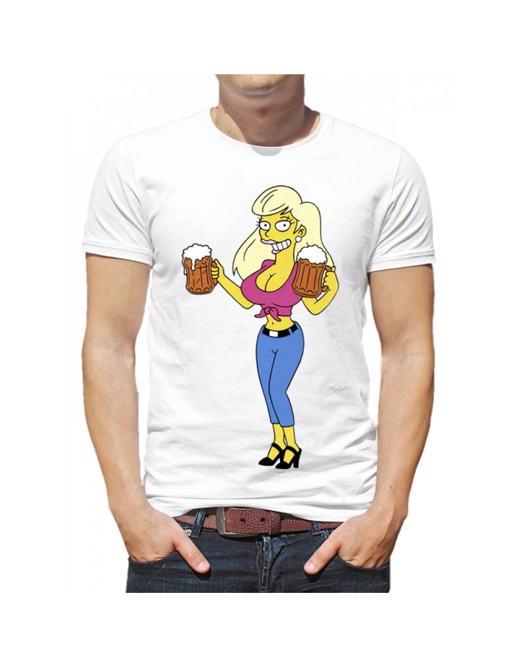 Мужская Футболка "Татьяна из Симпсонов с двумя кружками пива"