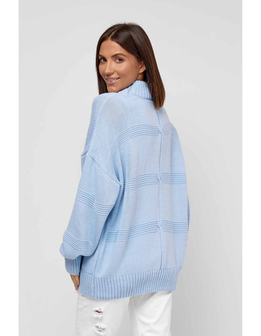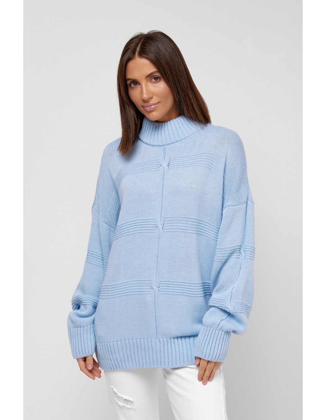 Вязаный женский свитер голубого цвета, сочетающий стиль и комфорт. Мягкий и уютный, идеально подходит для прохладных дней и создает приятный образ.